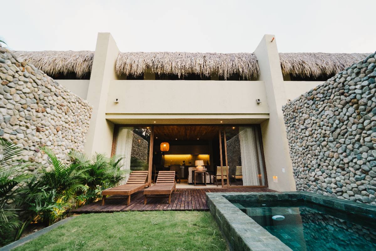 Con 140 m2 interiores y 90m2 de terraza exterior privada, con deck de madera, mobiliario y una piscina, además de un jardín de plantas nativas y tropicales. Se distribuye en dos niveles: en el primero, se encuentra una habitación, dotada con dos camas dobles, closet, baño privado, ventilador y aire acondicionado, además de área social con sofá, comedor 6 puestos, baño social, televisor pantalla plana, aire acondicionado, ventilador y cocina dotada. En el segundo nivel está una sala de estar, dotada con mobiliario y televisor pantalla plana, habitación principal con cama King, televisor pantalla plana, aire acondicionado, ventilador, baño, closet y terraza privada con mobiliario. Adicional a esto, se cuenta con una habitación auxiliar con dos camas dobles aire acondicionado, ventilador y closet.